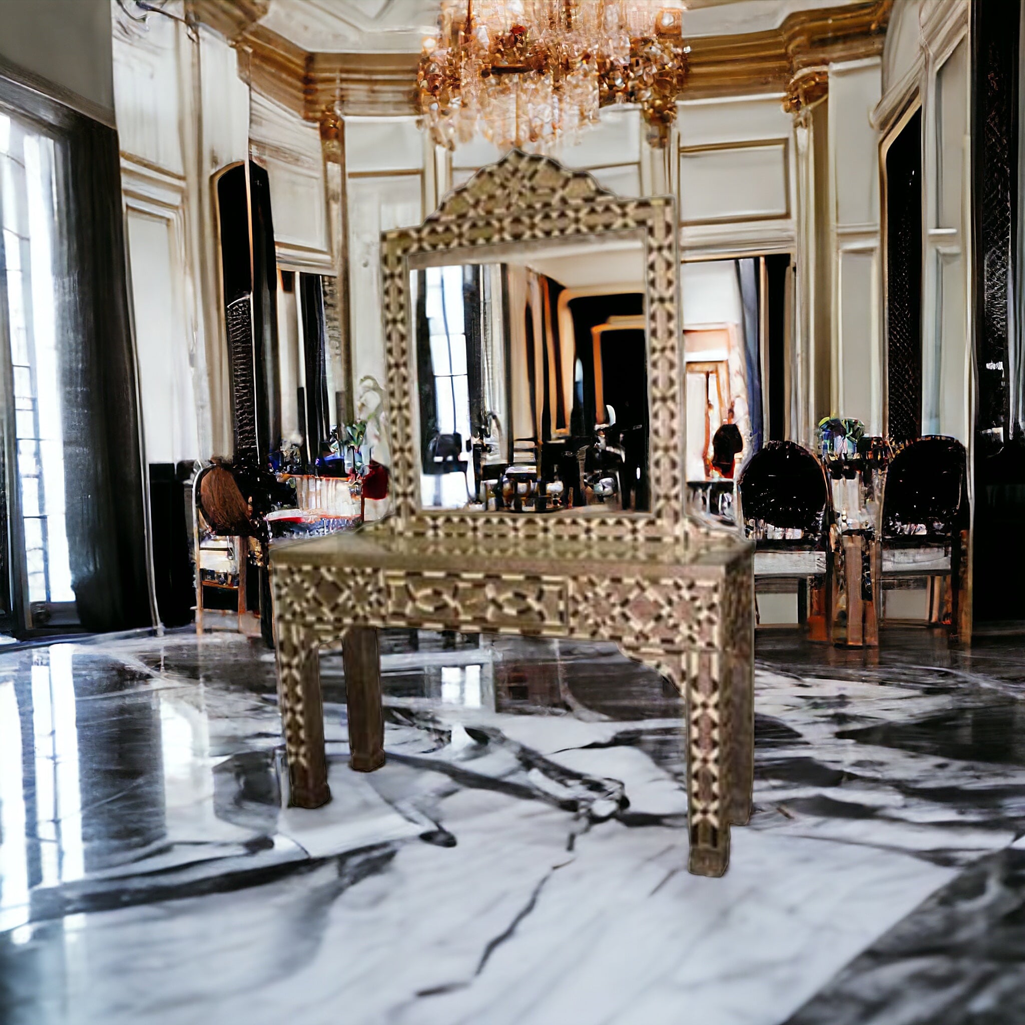Vintage moroccan furniture, bone consoles, tables, cabinets, chairs, armoires, dressers. chests