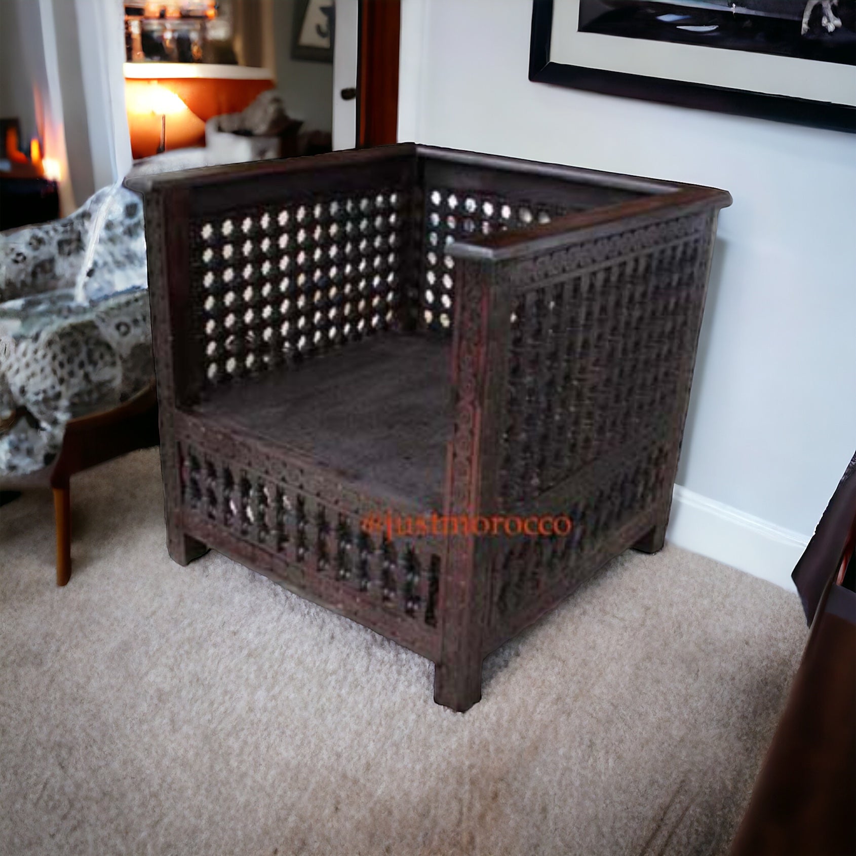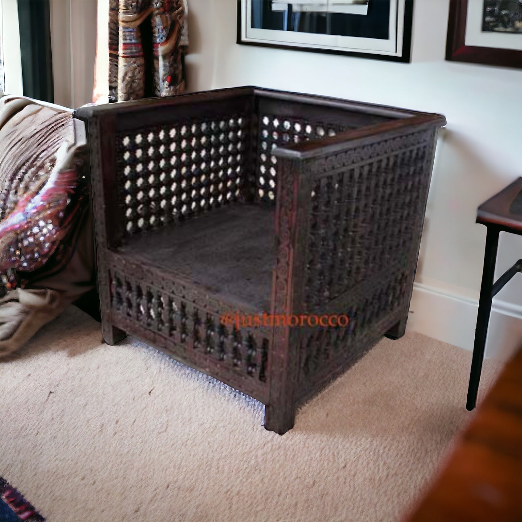 New arrival-Elegant moorish mosharabia chair, all handcarved, made of cedar. Gorgeous and will match any home decor. Custom made of this piece i available in any size .