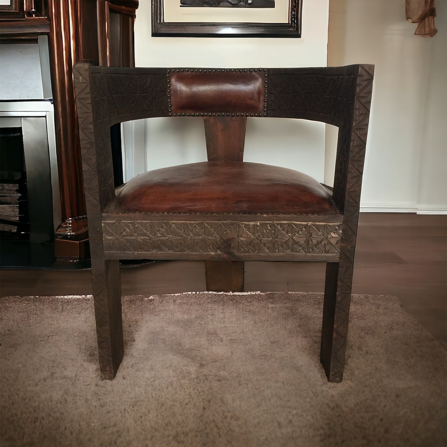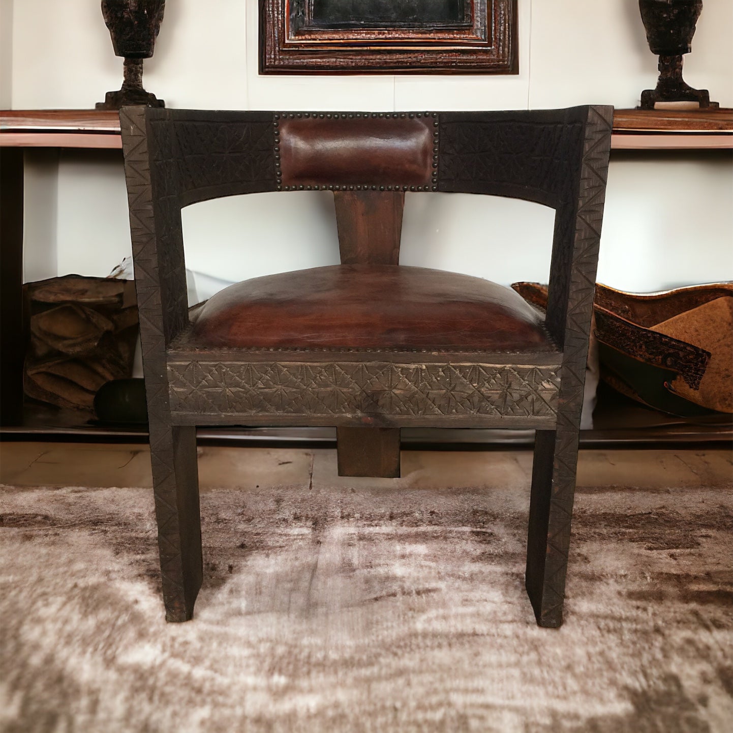 New arrival : An exotic hand carved & leather chair that is handmade in south of Morocco, reflecting the african touareg carving art.