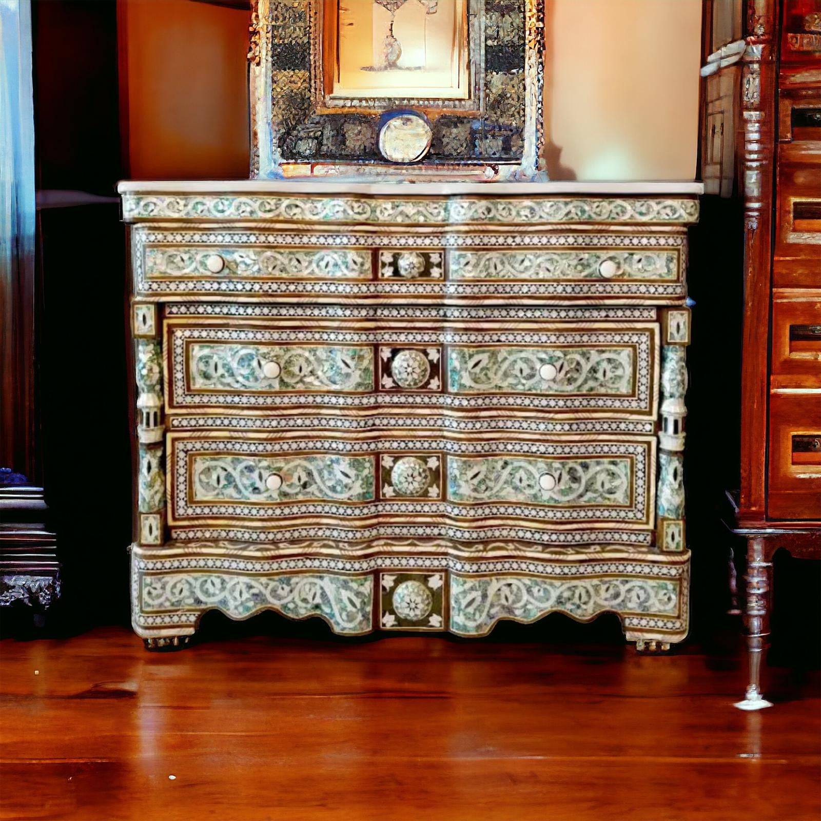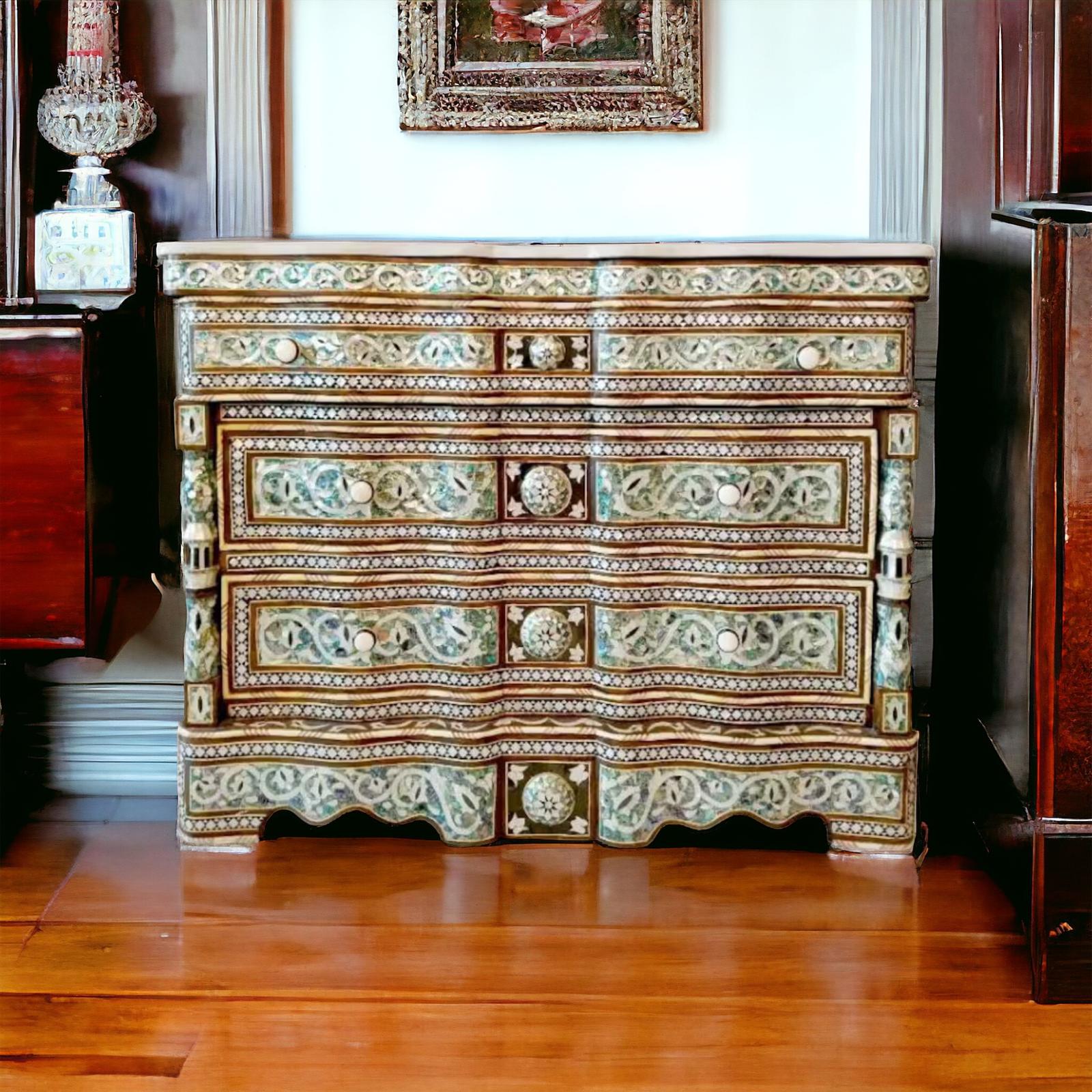 Mother of pearl syrian cabinet, great workmanship.